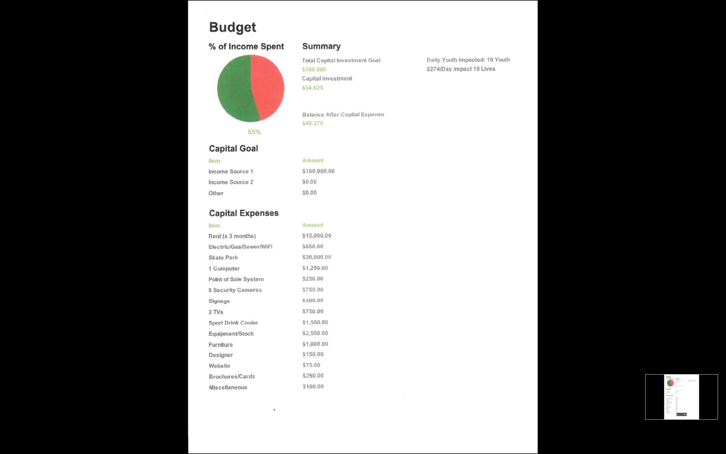 VSM-The Hub Capital Budget (Year 1)